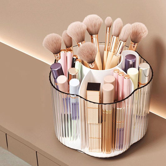 Summer Clear Multi-Grid Makeup Brush Storage Organizer for Vanity, Rotatable Cosmetic Organizer, ...